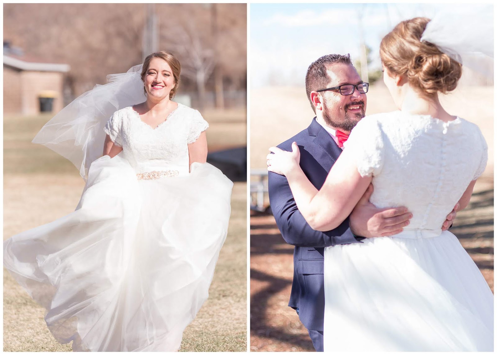 The weather was beautiful for a February day in Utah - it could have been so much worse, we met at the same tree where Ryan proposed to Jamie, he had his back turned to her and when he turned around his face radiated pure joy to see her in her wedding dress. I tried to get some photos of them looking at each other, but they were way too quick to pull each other into an embrace. I'm sure they were thrilled that their big day was finally here. Planning a wedding, moving a family and working full time is way more than either of them could handle alone, but all of their family and friends rallied together to help make their day magical...and it was.